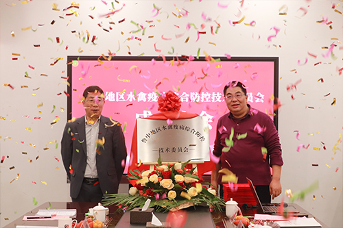 本會會長房靈軍、理事長張勇共同為“魯中地區水禽疫病綜合防控技術委員會”揭牌。