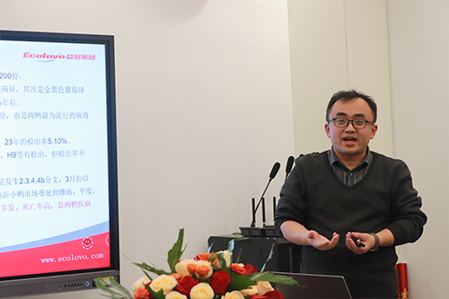 圣灃集團動保中心總負責人李志中做《肉鴨常見疫病防控策略》主題報告。