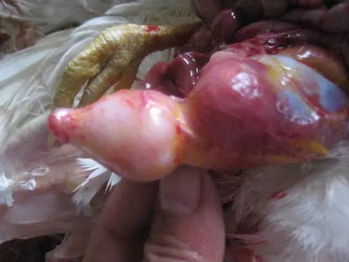 患病雞羽毛粗亂,相對(duì)正常雞個(gè)體明顯偏小,雞爪蒼白(左側(cè)為對(duì)照)