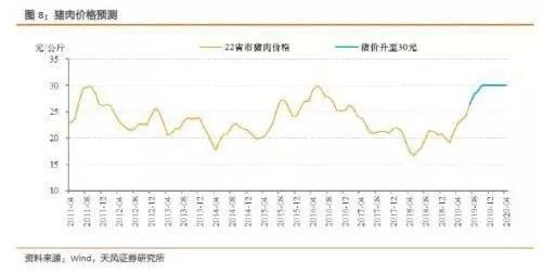 截至7月底生豬/母豬存欄量同比和環(huán)比跌幅仍未收窄,這說明至少到2020年一季度豬肉價格上行的趨勢大概率不會改變,8月份前4周22省市豬肉價格均價為30.2元/公斤,達(dá)到歷史高值,未來一段時間豬肉價格或?qū)⒈3指呶弧?/p>